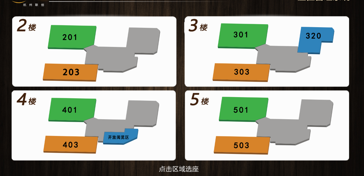 四楼:四楼A区(免预约)、四楼B区(免预约)、四楼C区(免预约)、四楼D区、四楼E区、四楼F区、四楼V区;