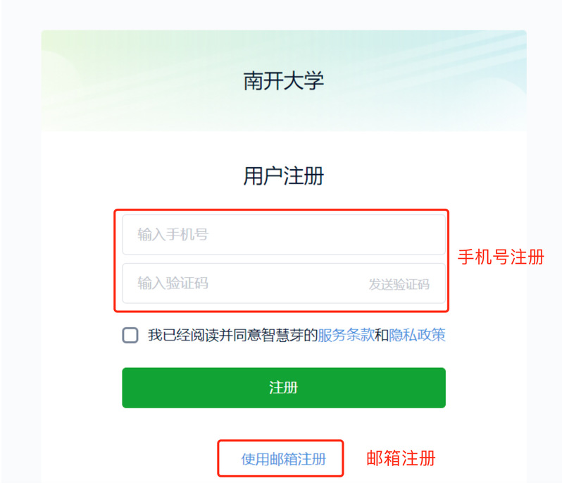 2、点击“免费注册”之后可以看到以下界面,读者可自由选择以手机号或者邮箱注册账号。