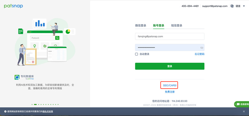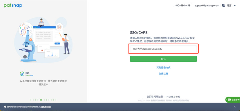 1、打开智慧芽网站选择“SSO/CARSI”