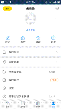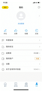扫描下面的二维码,下载并安装全球学术快报APP,安装好的显示(如图1所示)。