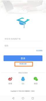2. 进入后,点击页面左上角进入个人设置,如之前注册过知网账号,可直接登录,若没有知网账号,可选择“快速注册”,使用手机号和验证码实现注册。