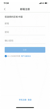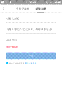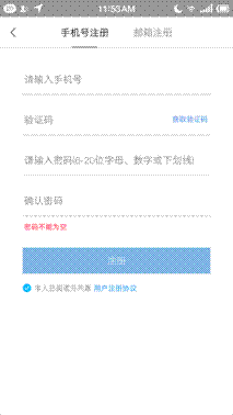 点击首页右下角的“我的”,再点击“登录”即可进入注册页面,通过手机和邮箱两种方式完成注册(如图2-1、图2-2所示)。