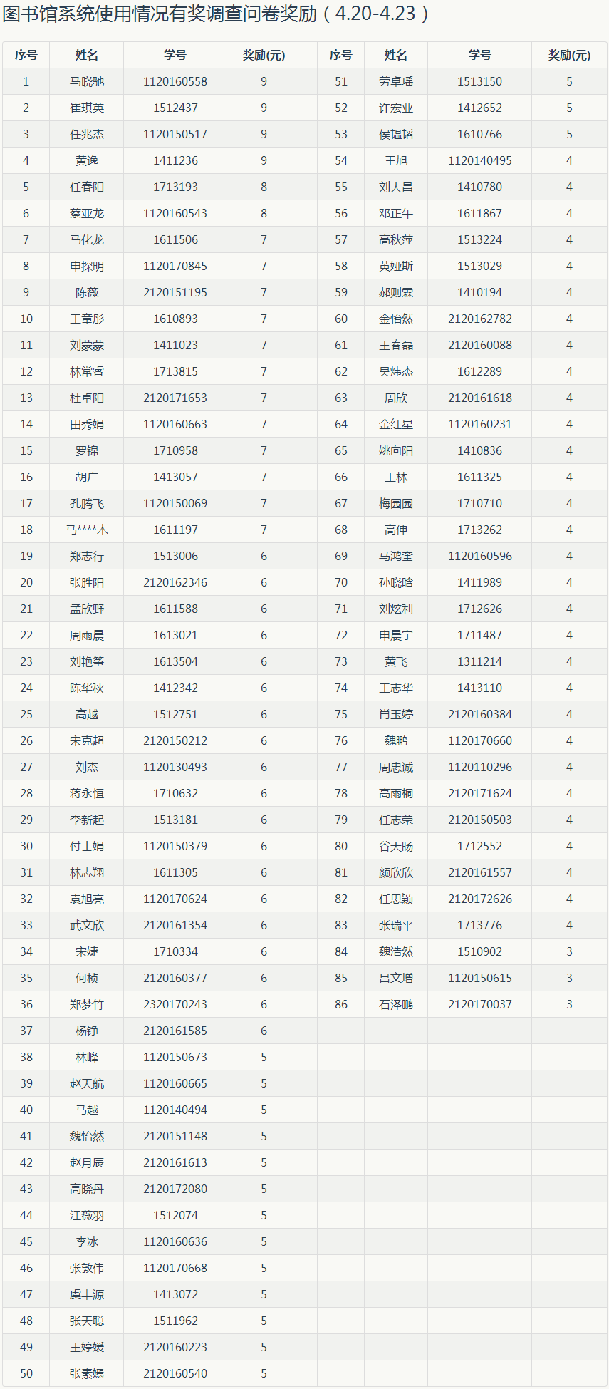 以上是4.20-4.23期间的活动奖励,读者可通过自助文印机刷卡查询并使用。