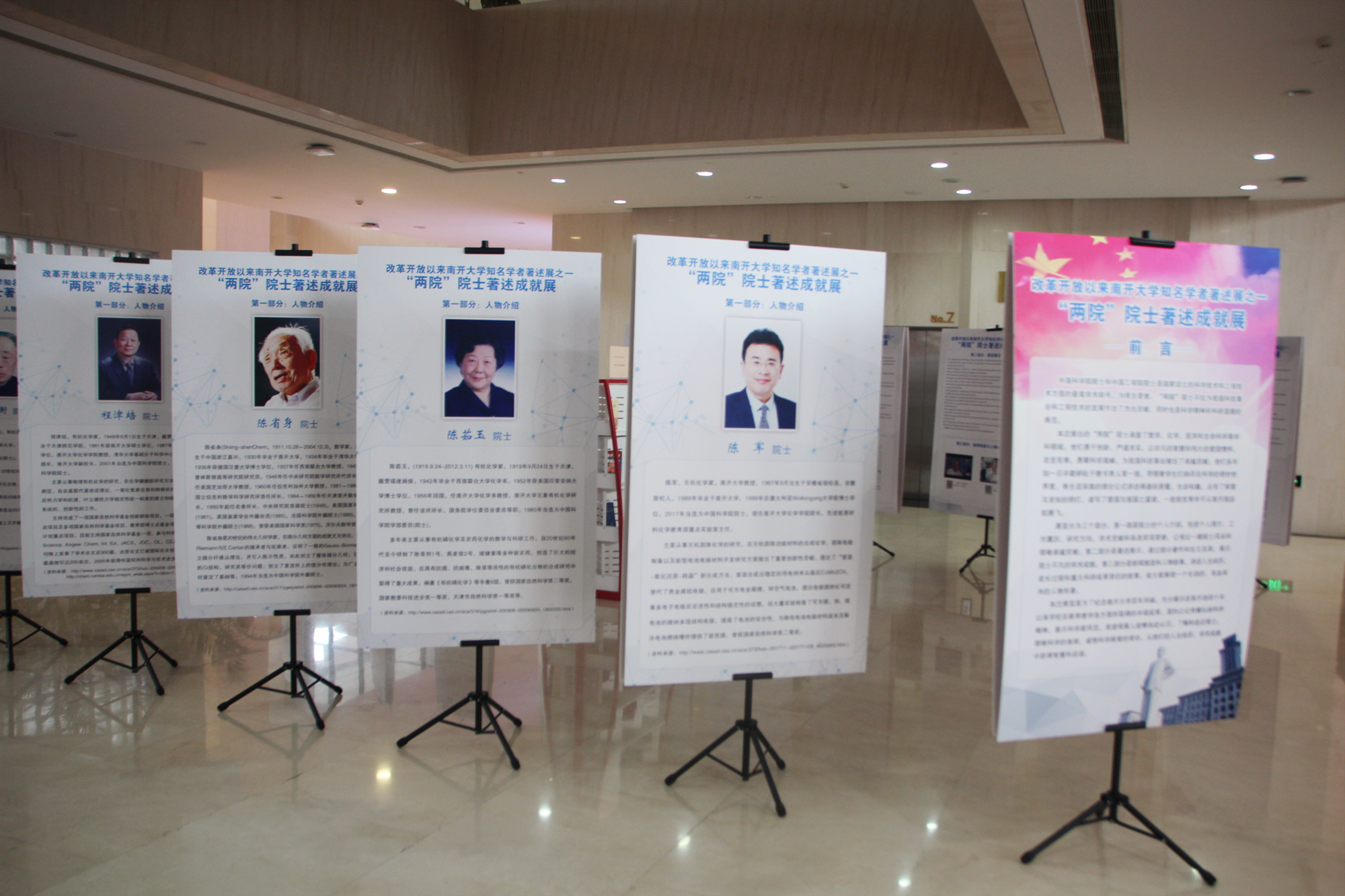 近日,“改革开放以来南开大学知名学人著述展之一:‘两院’院士著述成就展”在南开大学学津南校区图书馆二楼大厅开展。本次展览是“百年南开·文化文明——改革开放以来南开大学知名学人著述展”项目系列成果之一,展示改革开放四十年以来学校在教育教学等方面所取得的丰硕成果,向南开大学百年华诞献礼。